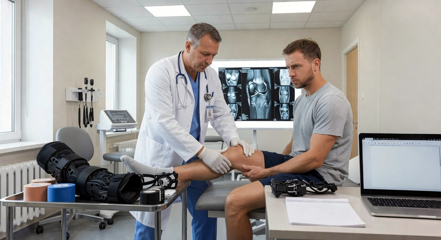 Если сустав регулярно «уходит», уже были вывихи или выраженная нестабильность после травмы — лучше показаться ортопеду. На приёме обычно выполняют тесты на стабильность, при необходимости оценивают МРТ/рентген, определяют причину нестабильности, подбирают фиксацию (ортез/тейп/комбинация) и план реабилитации.