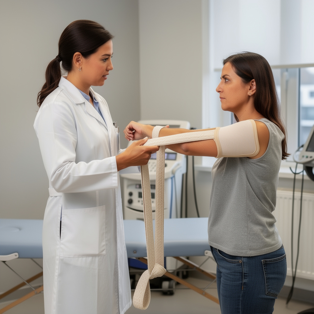 первые недели — ортез/косынка и щадящая разработка по протоколу;